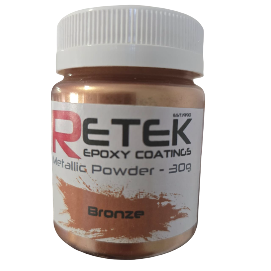 Combine Retek Metallic Powder 30g with 1 x 5kg Heavy Duty Epoxy – Clear / 1 x 5kg Poly Urethane – Clear.